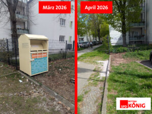 Deshalb bin ich seit Jahren aktiv gegen den Müll. Ab Anfang März ist die Situation wieder eskaliert. Müll ohne Ende. Dazu ein neuer Kleidercontainer, der leider die Vermüllung erneut verschärft hat, und dazu auch noch Ratten. Das geht gar nicht! Natürlich habe ich mich sofort erneut an Netto und den Bezirk gewendet.